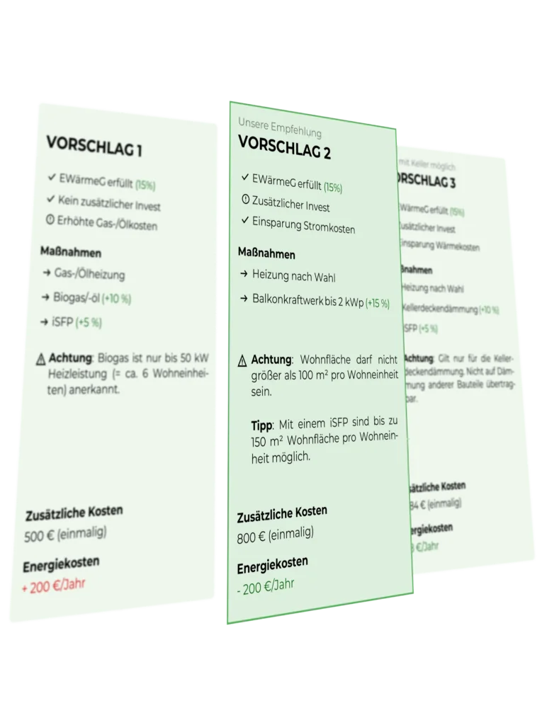 Ein wichtiger Baustein bei der Kundenbetreuung ist unter anderem die Beratung zur Erfüllung gesetzlicher (energetischer) Auflagen. Viel zu häufig verstehen Kund:innen die in Gesetzestexten verwendete Sprache nicht, haben Rückfragen und wissen nicht, ob die vorgesehenen Sanierungsmaßnahmen den gesetzlichen Anforderungen entsprechen.